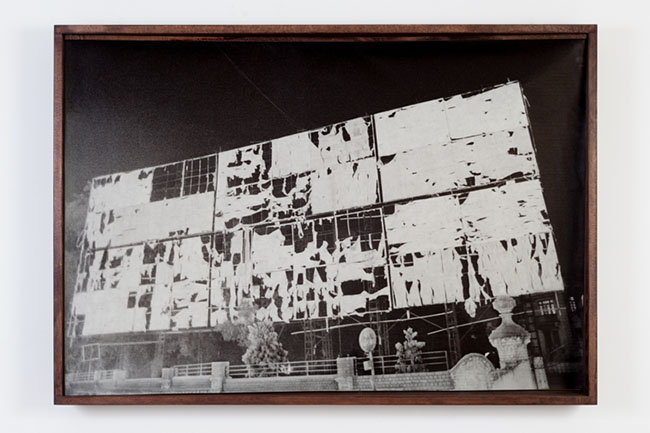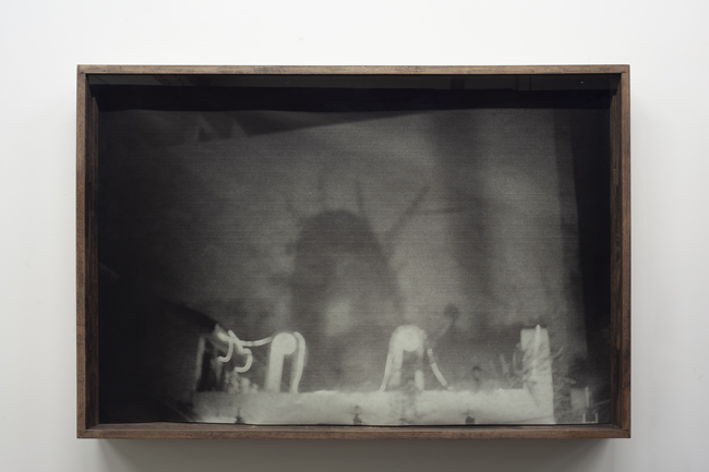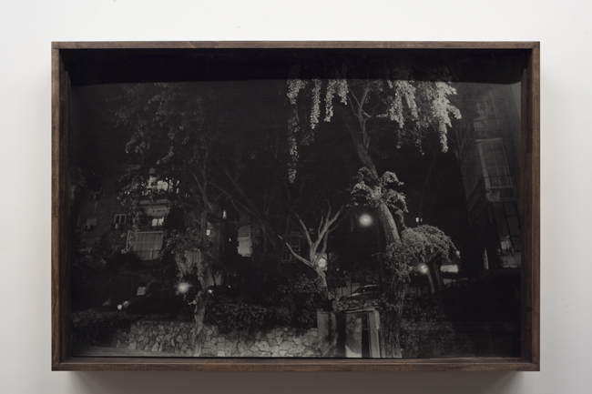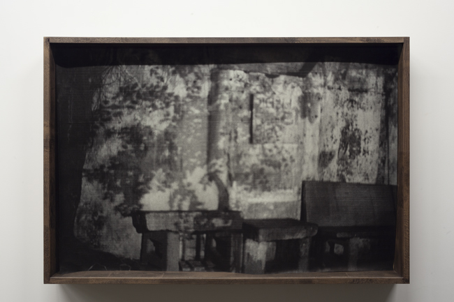 tirage jet d'encre sur papier japon 42g, hêtre et verre, 120x80x10cm