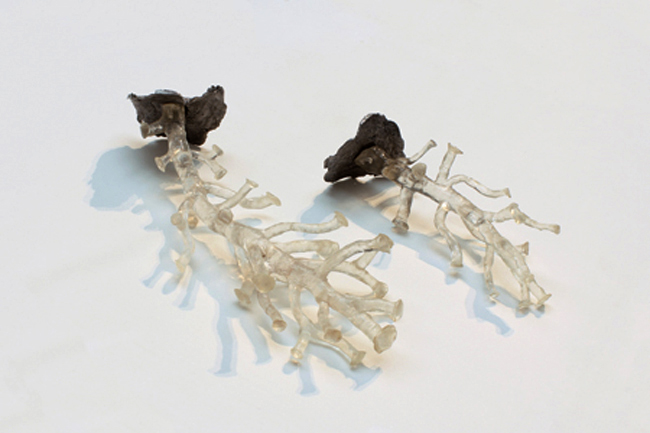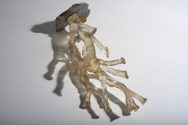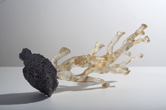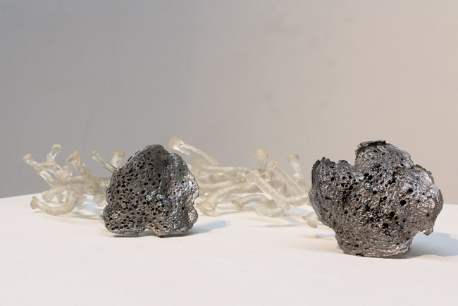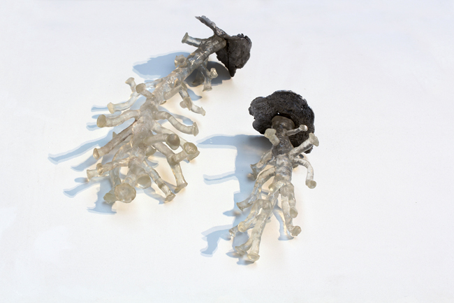 fonte d’aluminium, résine polyester, huile de vidange 35x14x13cm et 63x17x15cm