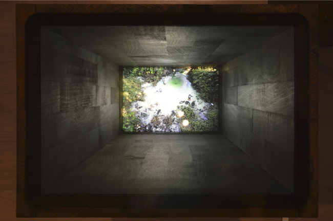 épreuve chromogène duraclear, boîte lumineuse, verres, hêtre, 23x32x90cm